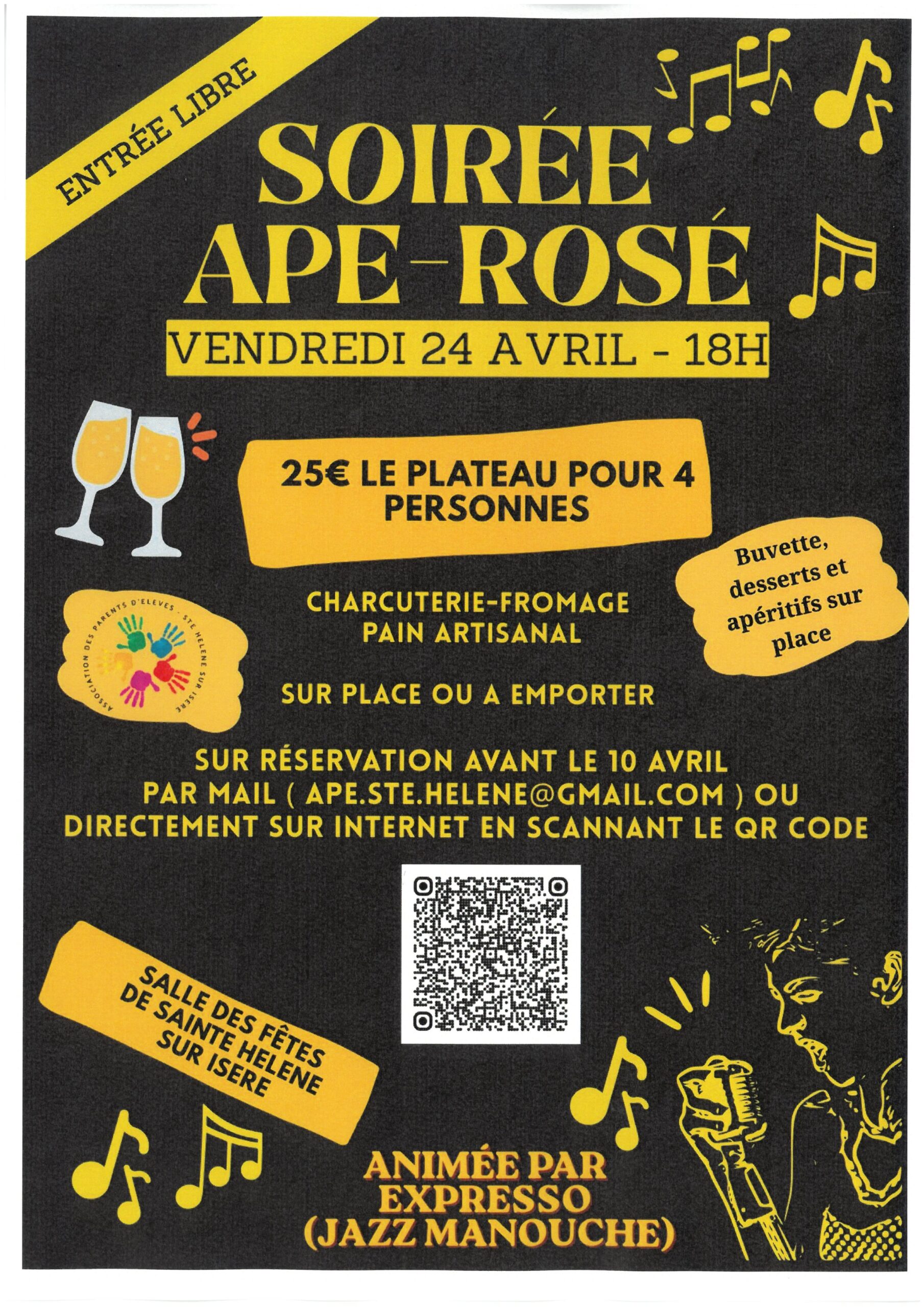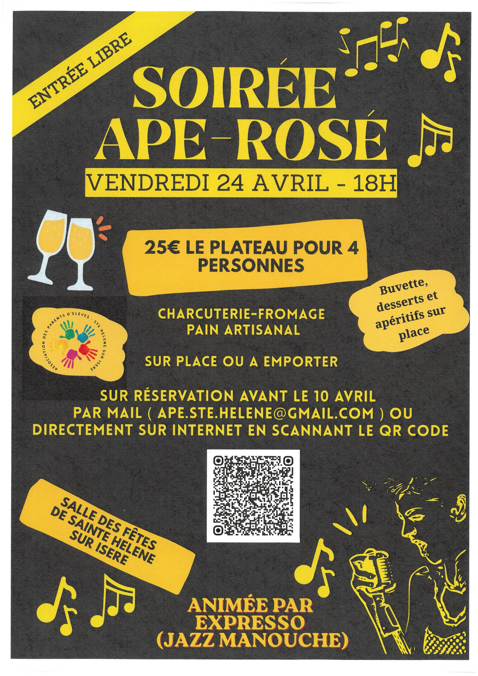8 avril 2026 - Soirée Apé-rosé le vendredi 24 avril à 18h