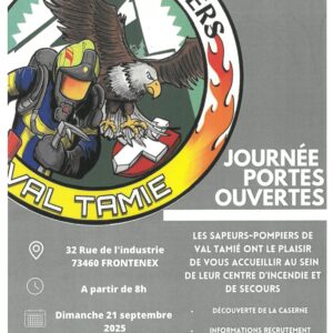 Le dimanche 21 septembre 2025, à partir de 8h, les sapeurs-pompiers de val Tamié vous accueillent à la caserne, 32 rue de l’Industrie à Frontenex. Au programme : découverte de la caserne, informations recrutement, activités pour les enfants et présentation des véhicules.
