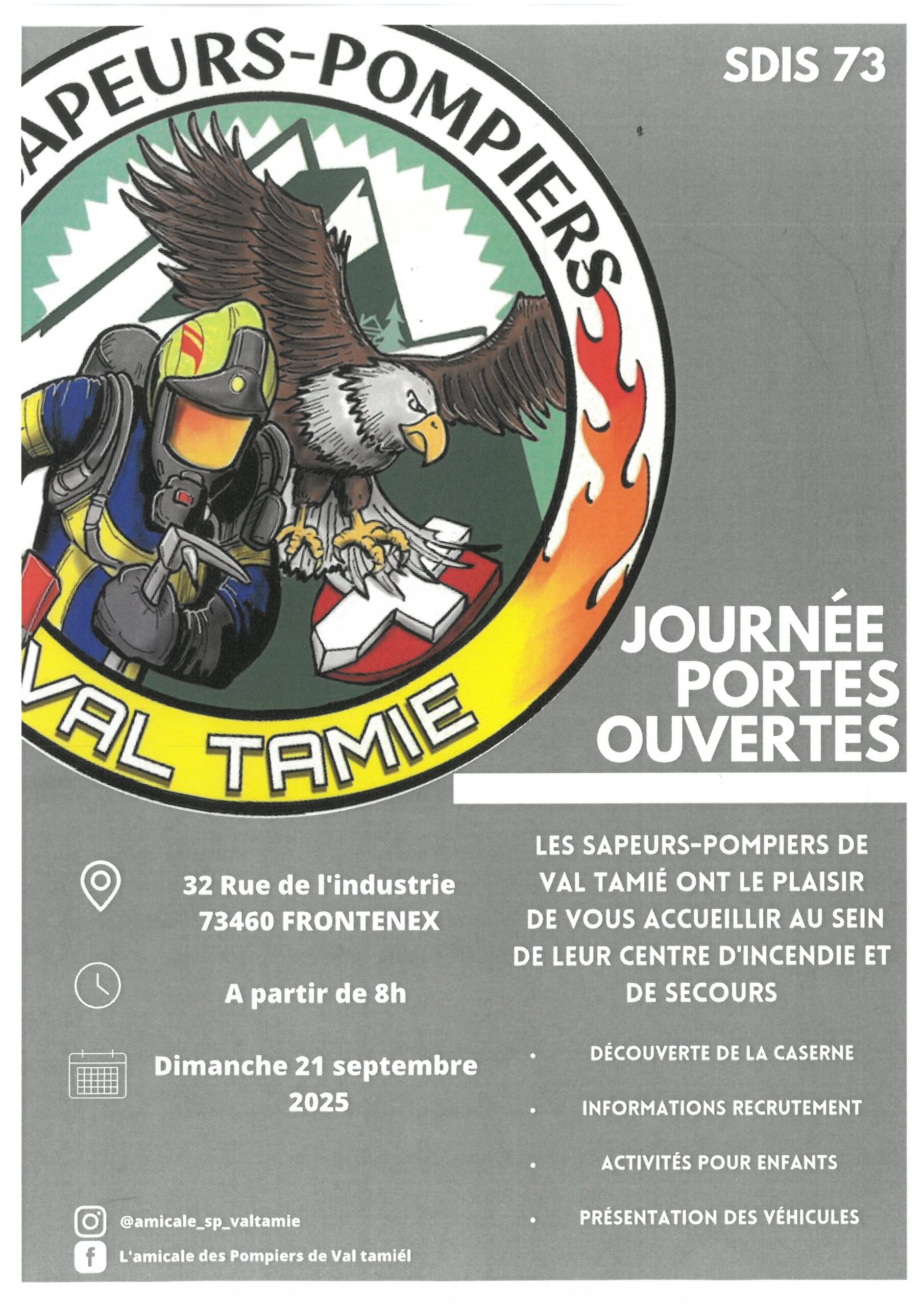 Le dimanche 21 septembre 2025, à partir de 8h, les sapeurs-pompiers de val Tamié vous accueillent à la caserne, 32 rue de l’Industrie à Frontenex. Au programme : découverte de la caserne, informations recrutement, activités pour les enfants et présentation des véhicules.